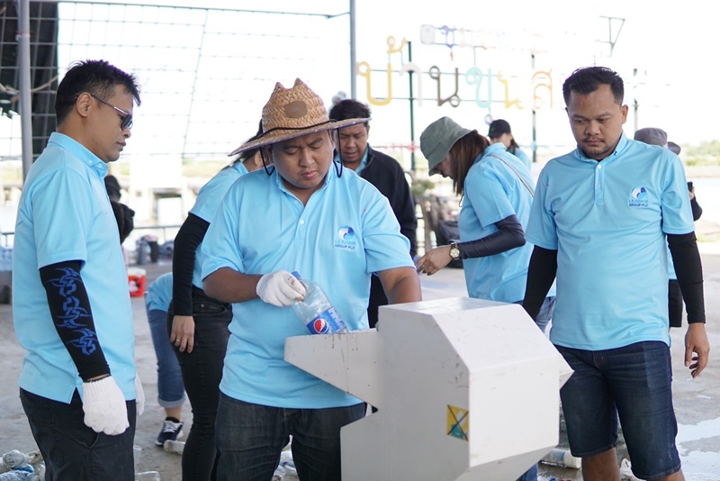2. เก็บขยะทะเล ขวดพลาสติก เพื่อนำมารีไซเคิลทำแนวทางเดิน